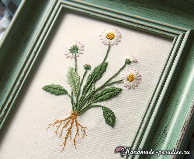 Ботаническая вышивка. Полевые ромашки вышивкой гладью. Представляю вашему вниманию пошаговый фото мастер-класс по вышивке полевых цветов — ромашек, для создания декоративного панно ручной работы для украшения интерьера.