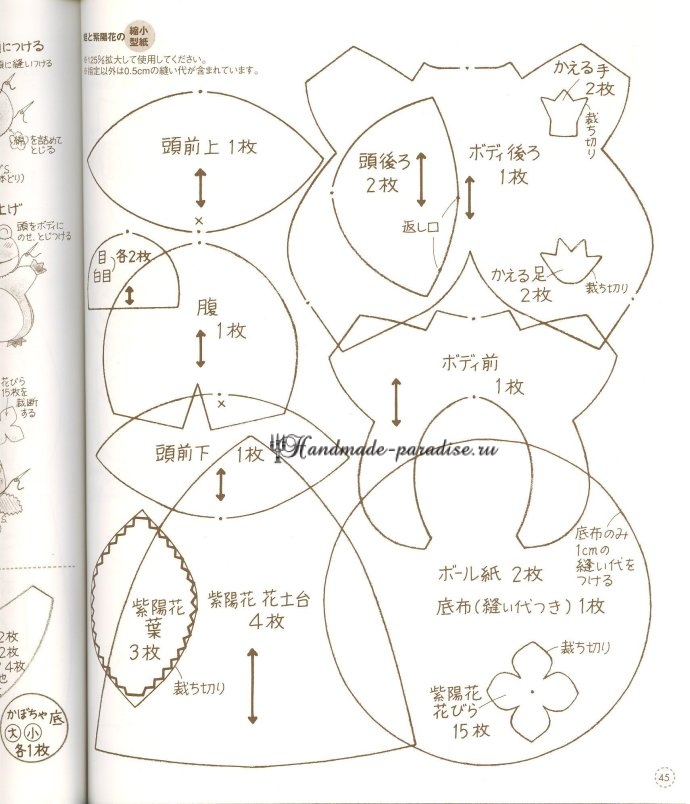 Шьем игрушки. Журнал с выкройками текстильных игрушек от японских издателей. В журнале вы найдете выкройки следующих игрушек: кролика, пингвина, собачки, черепашки, крота, кошки, мышки, медвежонка, лягушки, курочки, цыпленка, лисички, обезьянки, куколки, рождественского оленя и белочки. Шейте игрушки на радость малышам!
