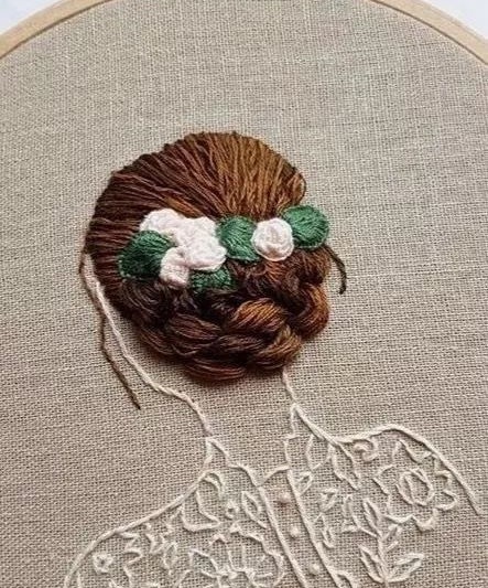 Женские прически в объемной вышивке