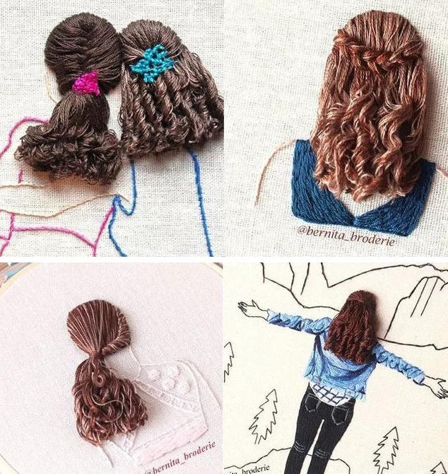 Женские прически в объемной вышивке — декоративные панно с вышивкой от автора — французской художницы Bernita Broderie. Представляю вашему вниманию несколько самых красивых работ для вдохновения и небольшой видео мастер-класс.